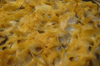 - Mix sauce with noodles, chicken, and mushrooms/green onion mixture.