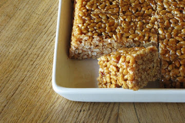 - Press firmly into an oiled brownie pan, flattening the top with the back of a spatula. Cover with cling film and refrigerate until firm.